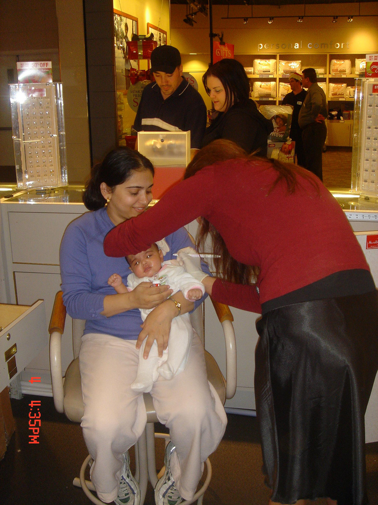 In Michigan, there was a party for Hibah and she met lots of her relatives. Before we left, she had her ears pierced. For some reason they do it one ear at a time so of course, she didn’t want the 2nd ear done.