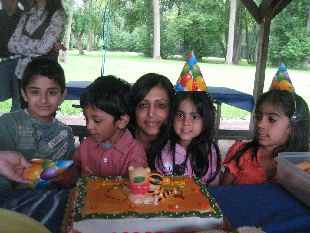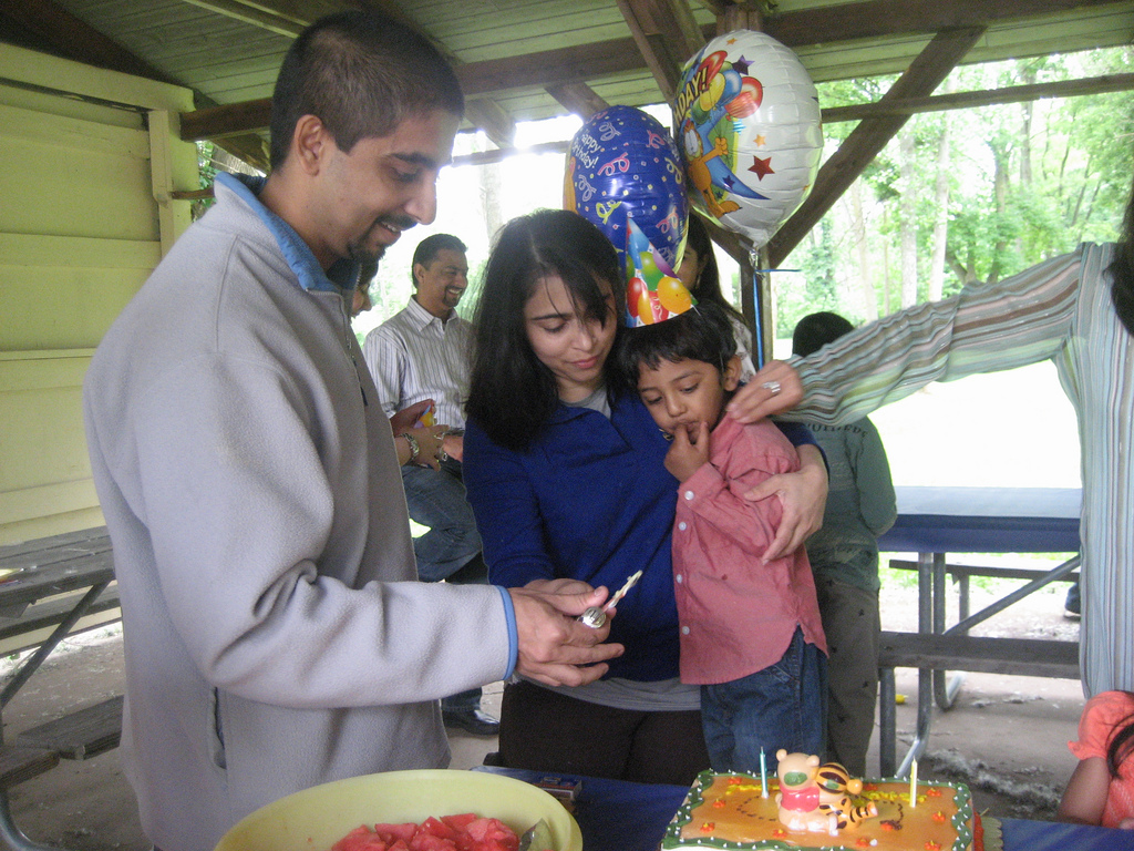 We had a small party and just invited folks with kids around the same age. All in all, there were about 30 people and we rented the pavilion at Wonch park in Okemos which had a playground. The kids had fun, although, I do not think Jamal understood what was going on. The first 2 birthdays for any kids are mainly for the parents. He got some nice gifts and Tanya slept through most of it. It rained in the morning but by the time of the party, it was sunny and dry. A perfect day.