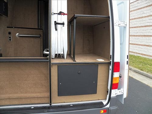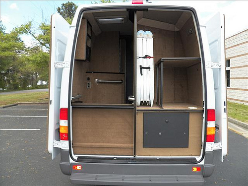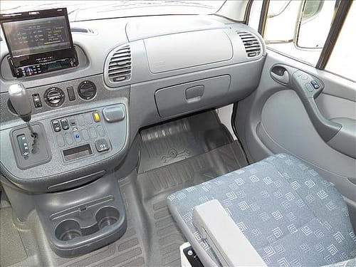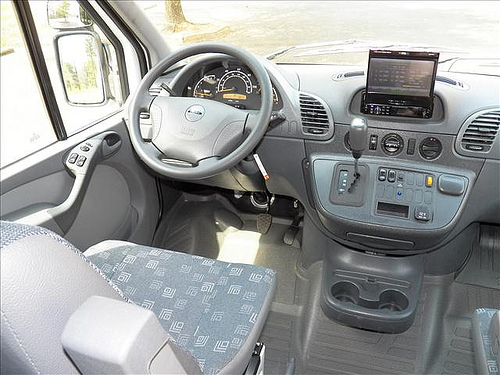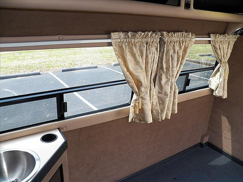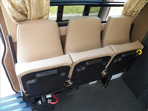 So we begin the early parts of our journey with our new Dodge Sprinter. Originally, this was built out for a handicap person so alot of the essentials were already in place including: a toilet, a sink, an inverter, plugs, carpeting, and bench seats. The seats, as you can see, were up against the side wall. Perfect number of seats for the 5 of us.