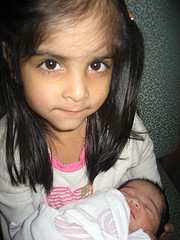 Big sister Hibah holds her little sister Tanya for the first time. Day 2 and 3 were spent in the hospital as mom went through the normal hospital recovery along side Tanya.